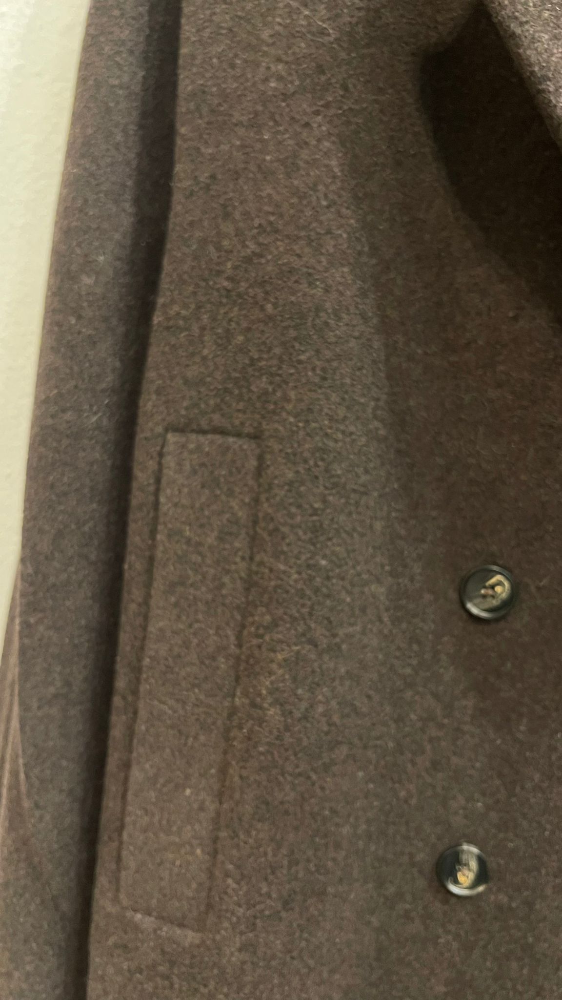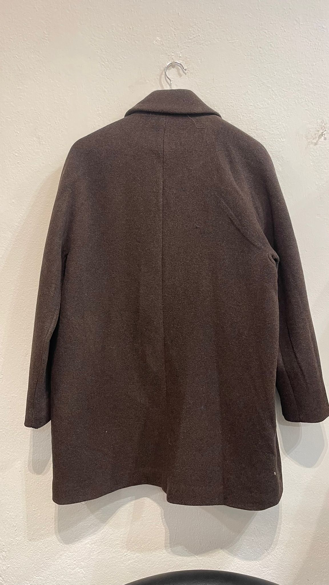Abrigo cruzado con botones delanteros y bolsillos laterales.