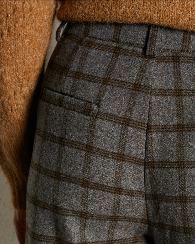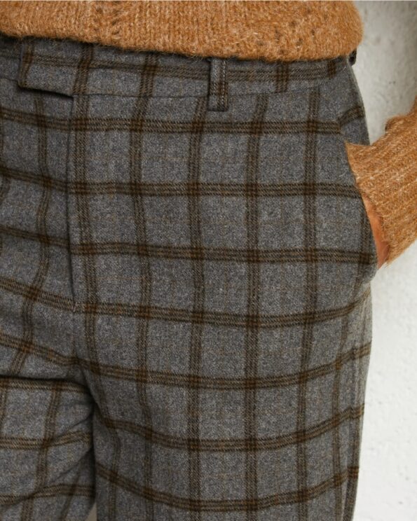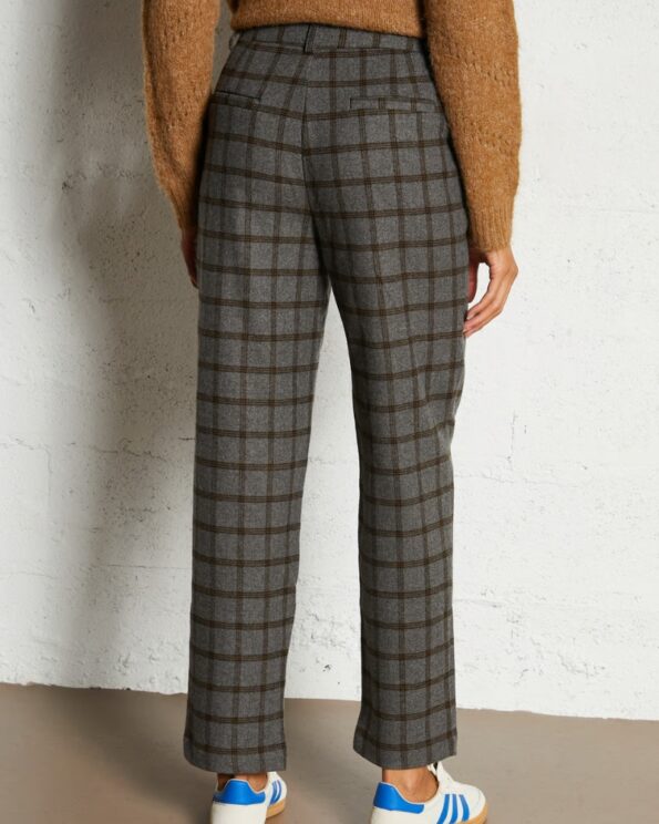 Pantalon con corte recto, estampado de cuadros y cerradura de cremallera.