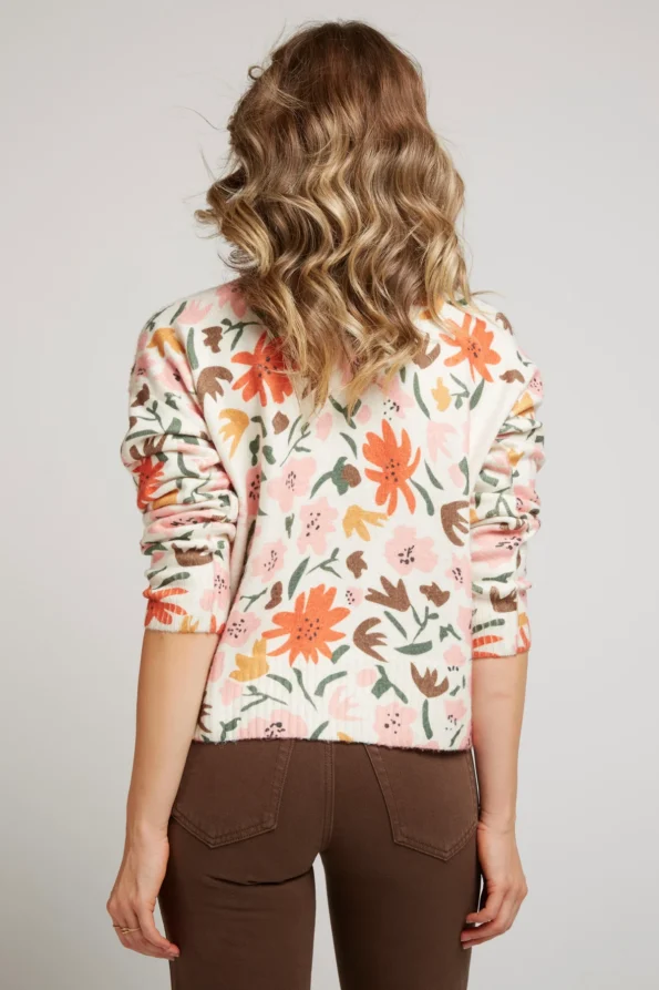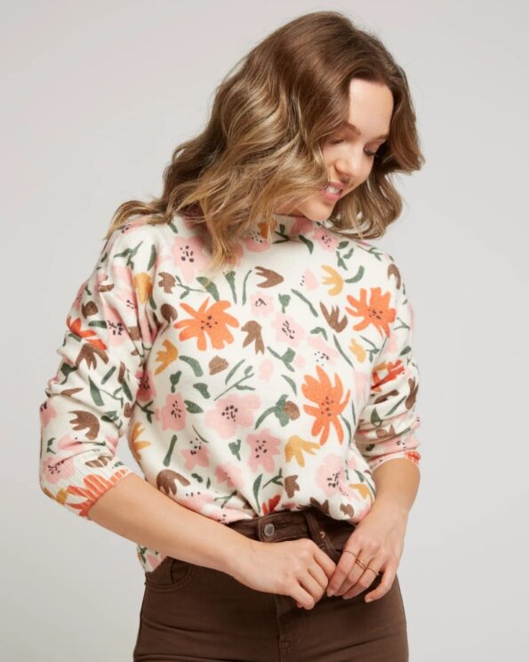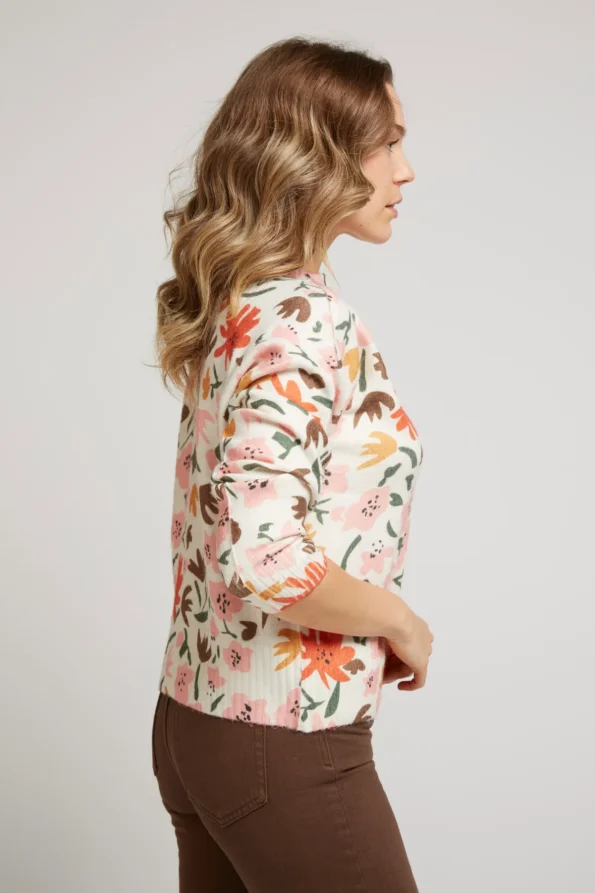 Jersey con estampado florar, cuello redondo, manga larga y corte recto.