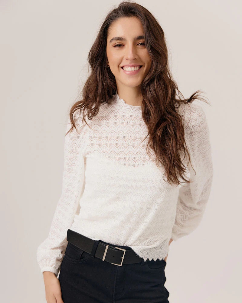 Blusa de encaje con efecto gráfico transparente.