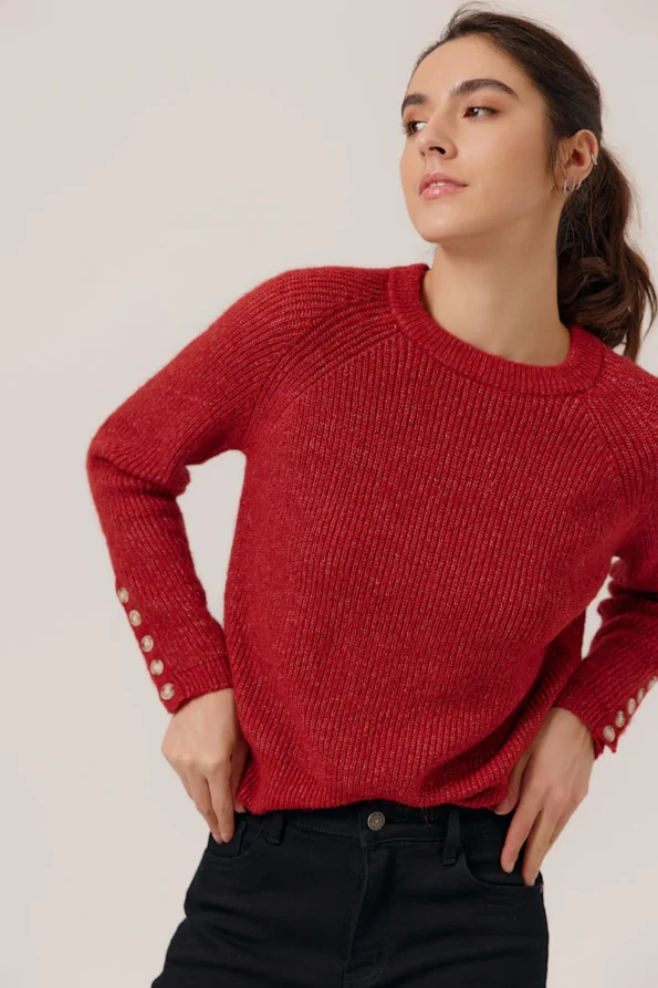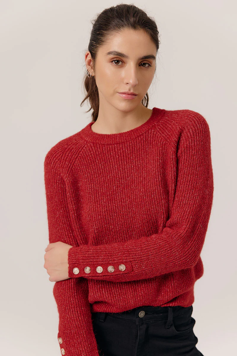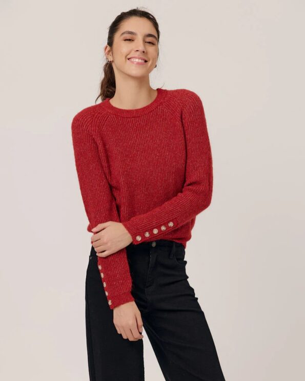 Suéter de cuello redondo de punto texturizado con botones en las mangas.