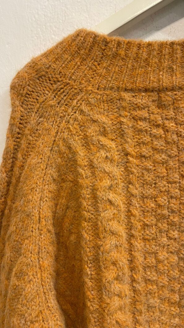 8% lana, 13% acrílico, 49% rayón, 18% poliéster, 11% terileno, 1% elastano