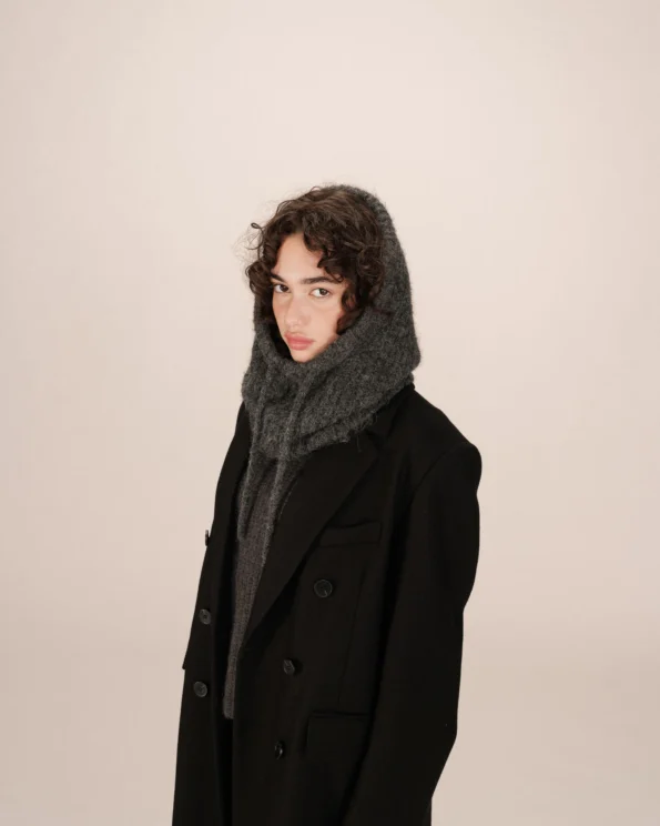 59% poliéster reciclado, 21% acrílico, 11% poliéster, 8% lana, 1% elastano