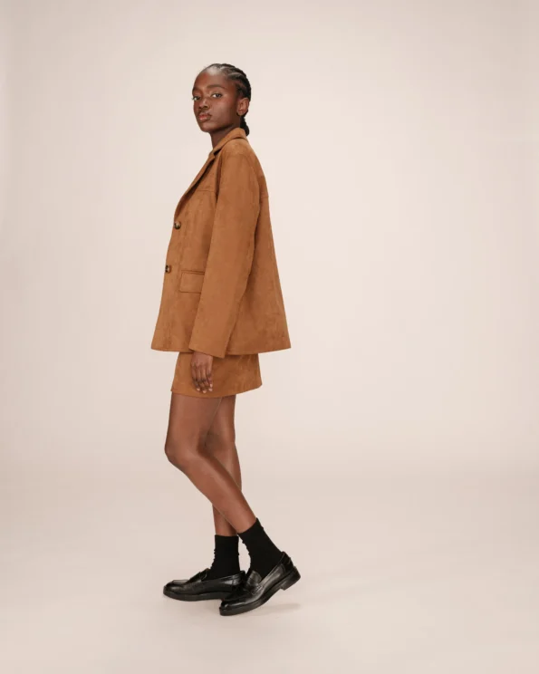 Chaqueta de ante con corte recto y bolsillos delanteros.