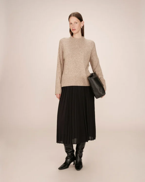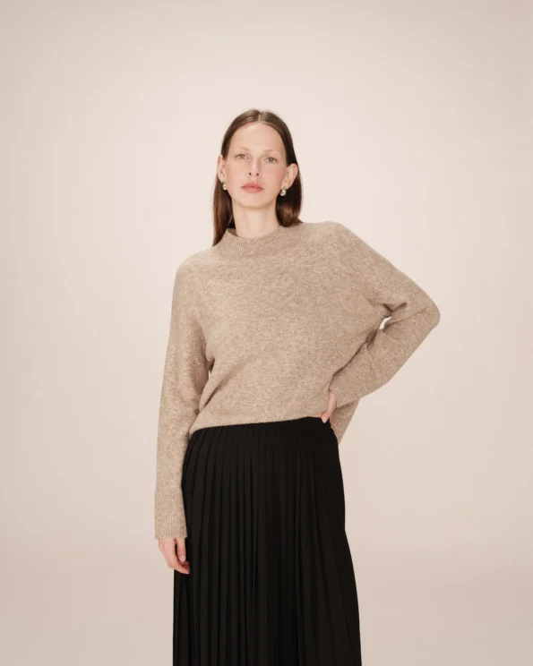 Jersey holgado de punto con corte cuadrado, manga larga y cuello chimenea.