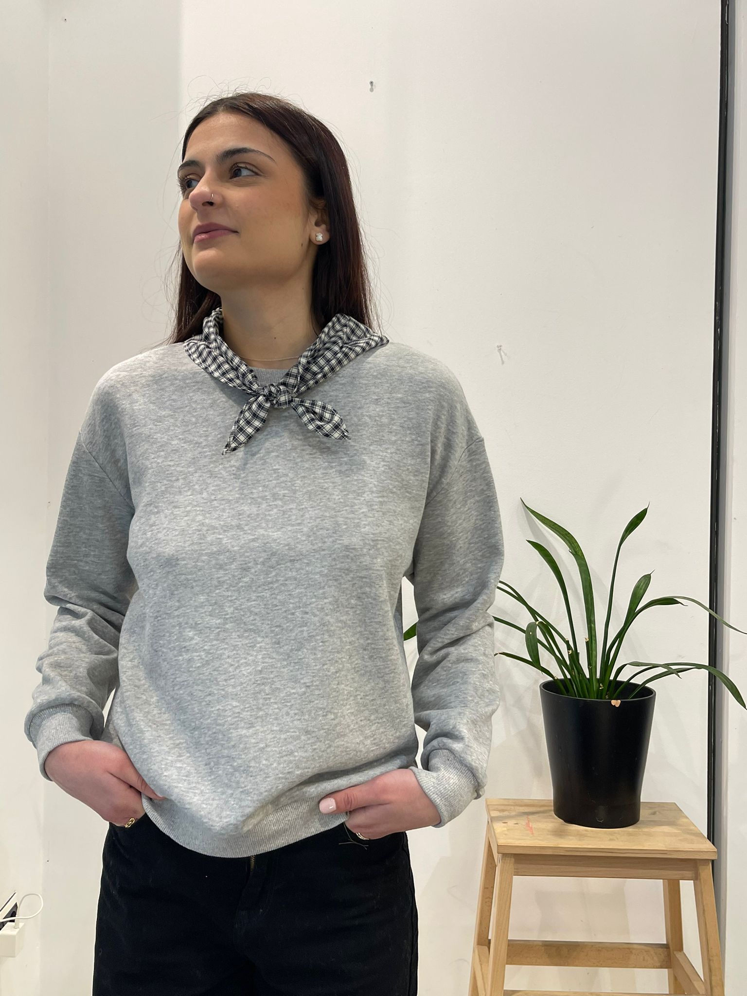 Una sudadera ligera y sofisticada para tus looks de primavera y verano. Incluye pañuelo desmontable para cambiar tu estilo en segundos.