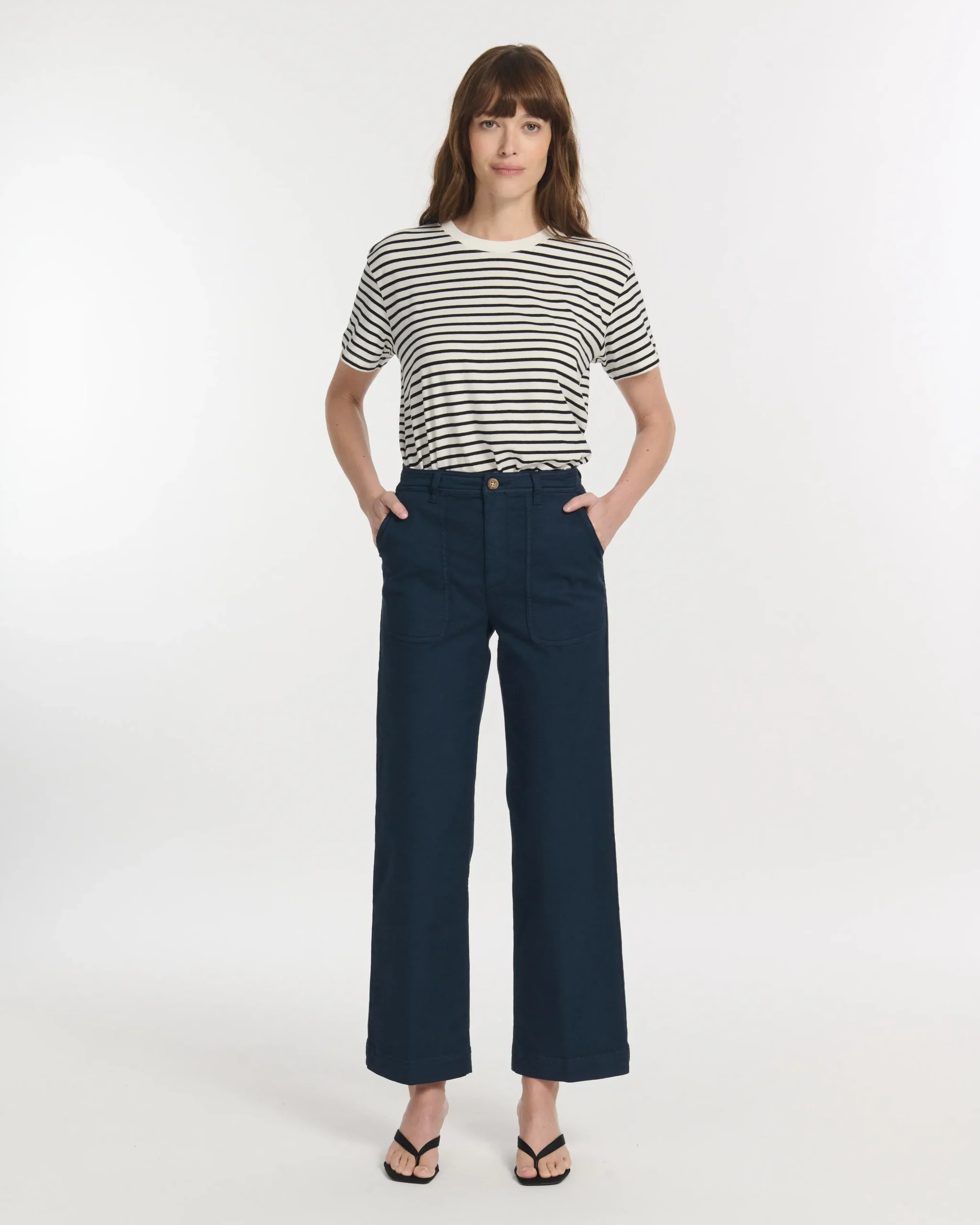 Corte recto ancho y cintura alta, informal y femenino a la vez.