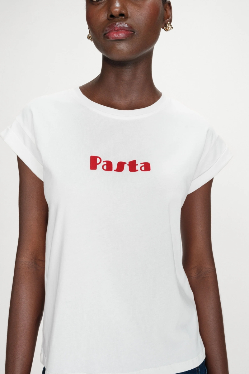 Camiseta de manga corta con mensaje «Pasta».