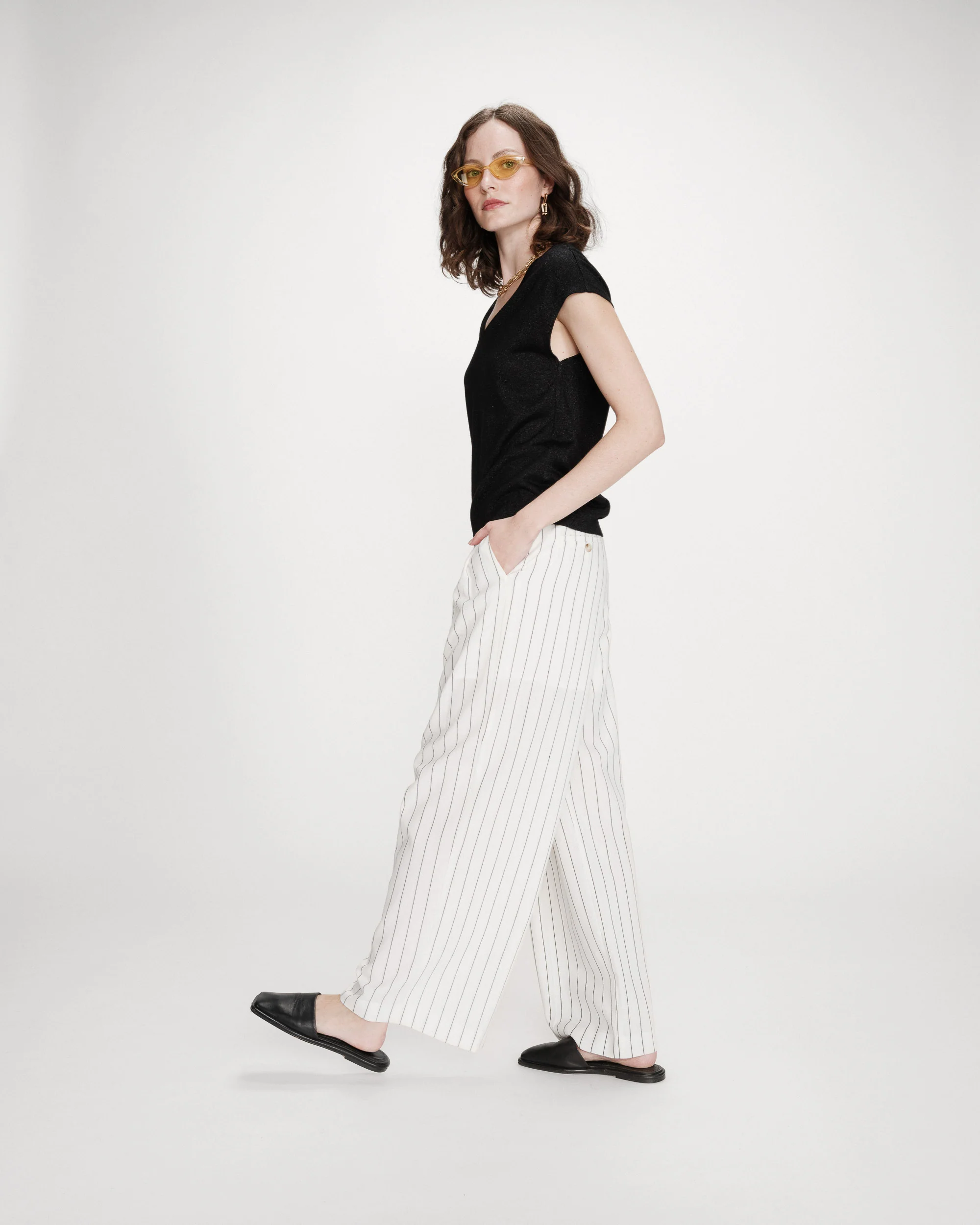 Camiseta con mangas cortas y un escote en V confeccionado en lurex.