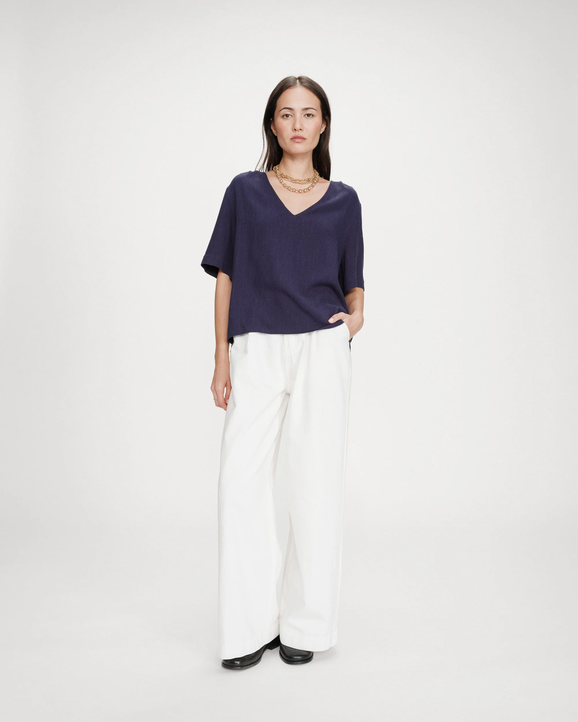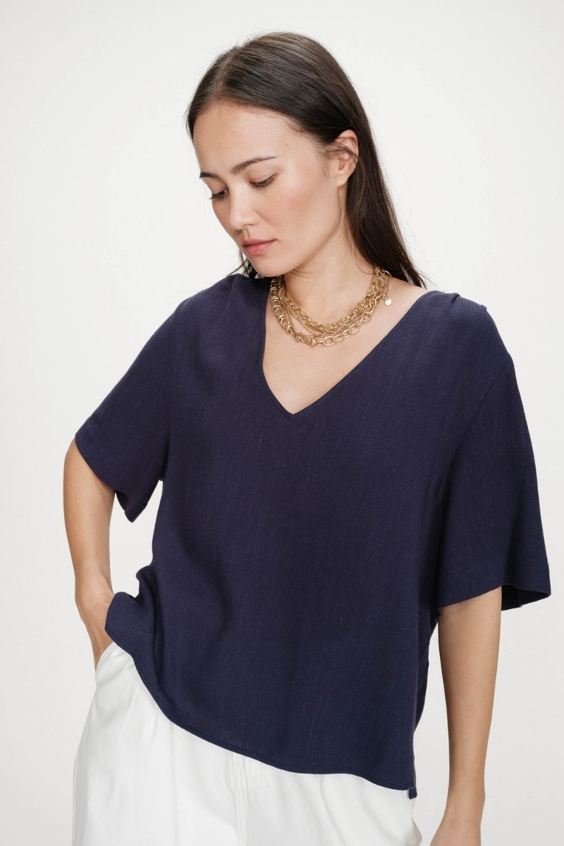 Camiseta de manga 3/4 de manga corta y escote en pico.