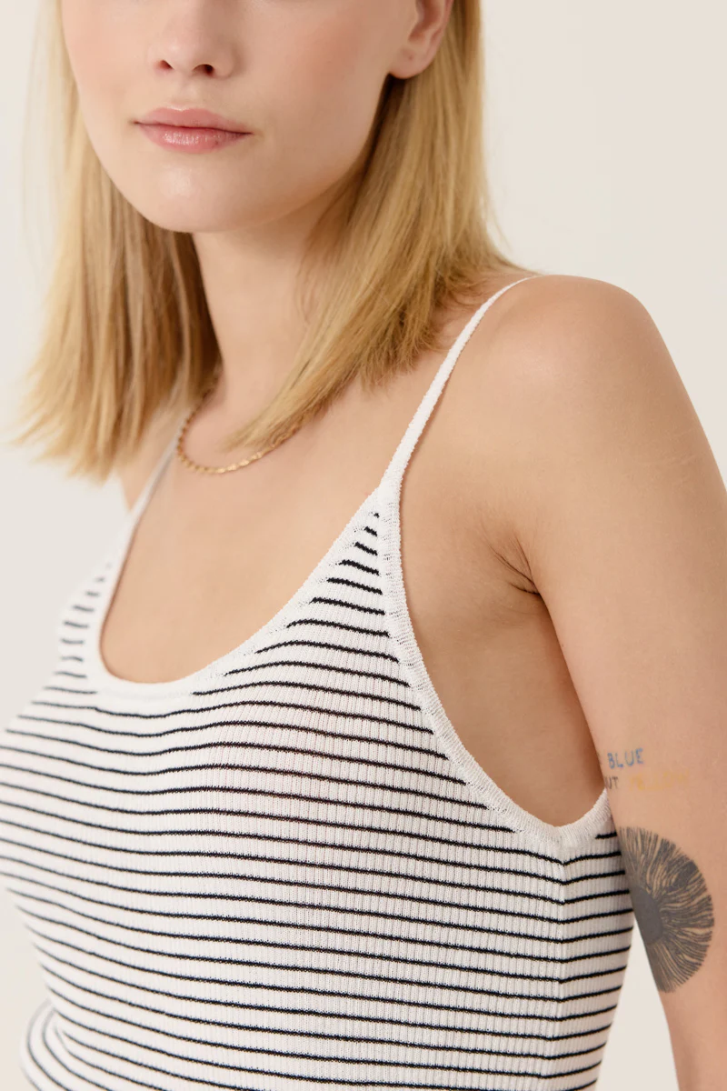 Camiseta sin mangas acanalada con escote redondo y abierto.