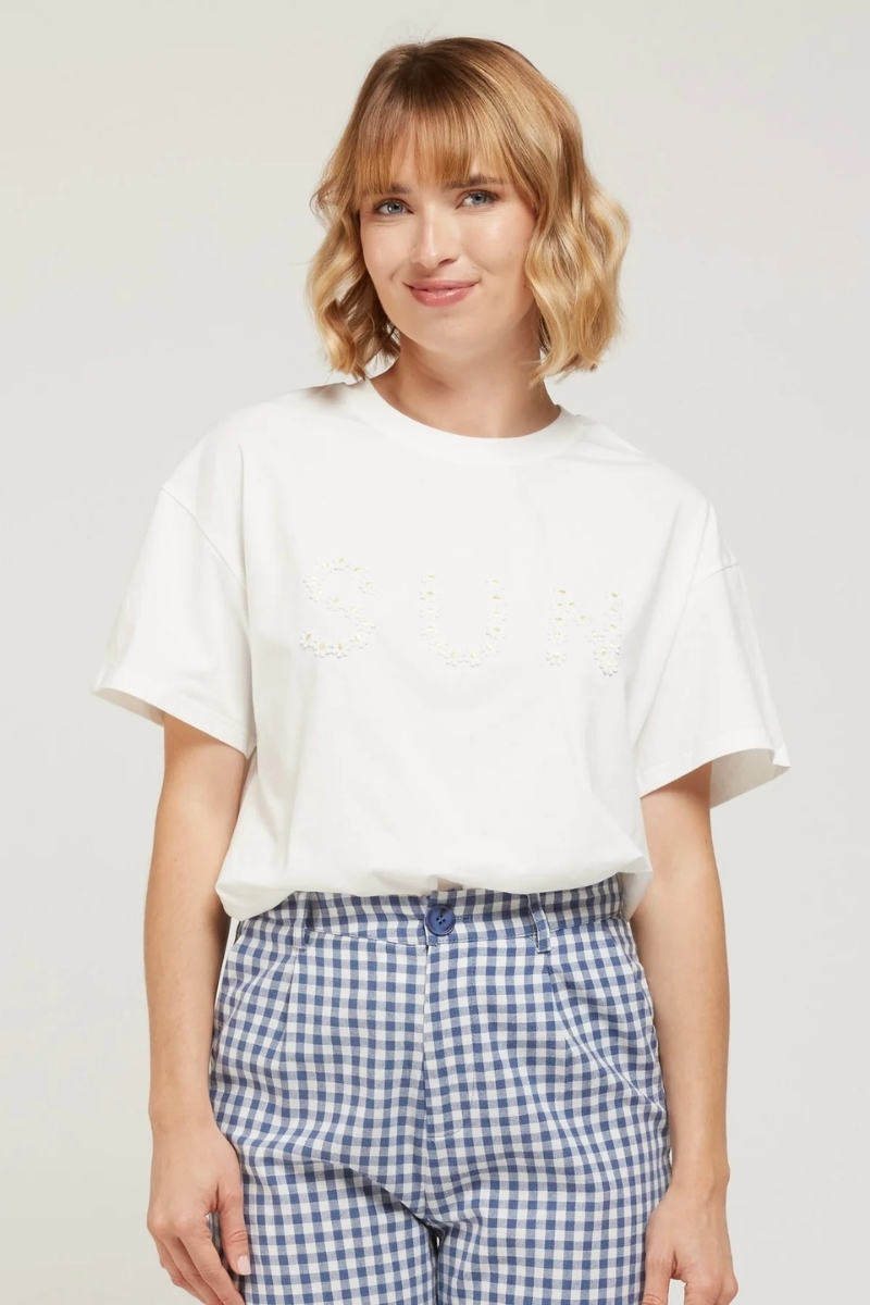 Camiseta de manga corta con mensaje «SUN»