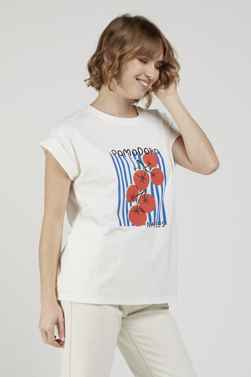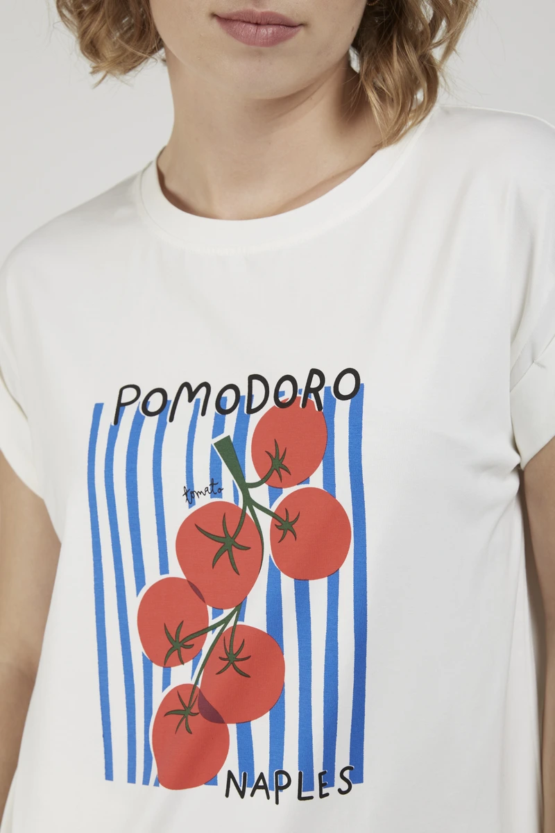 Camiseta de manga corta con mensje «POMODORO»