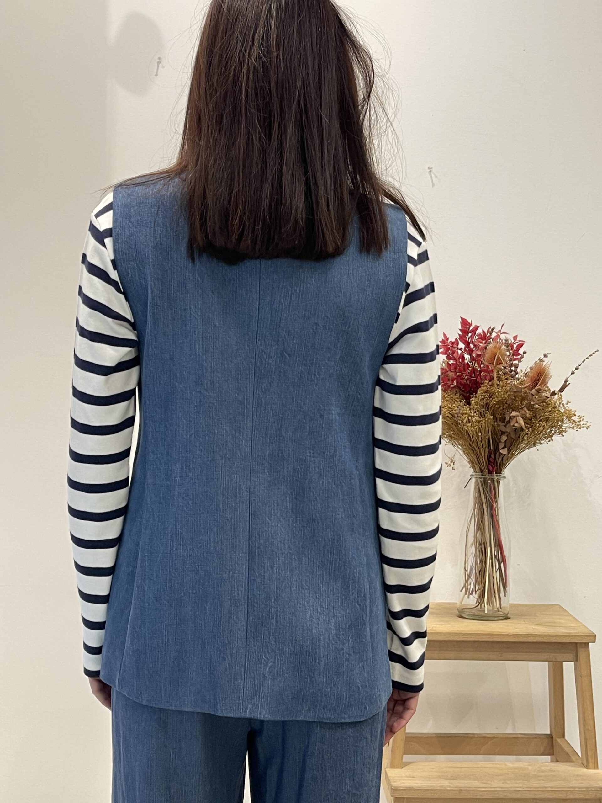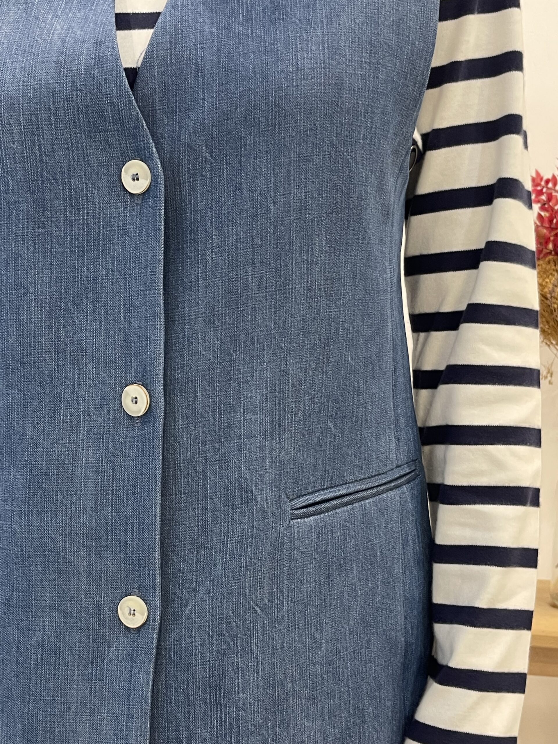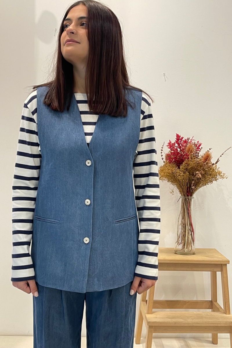 Chaleco con escote en pico, botones y bolsillos delanteros.