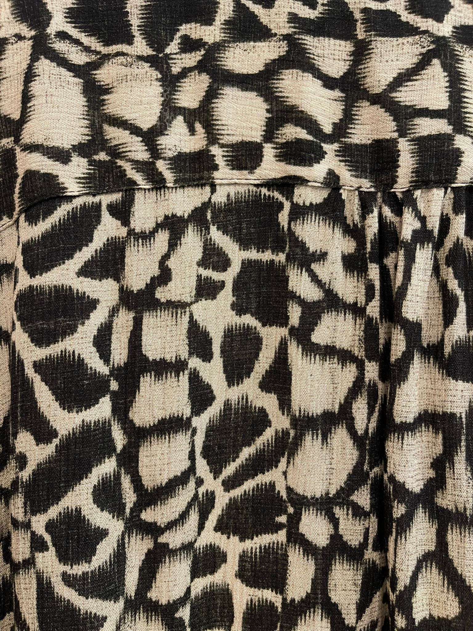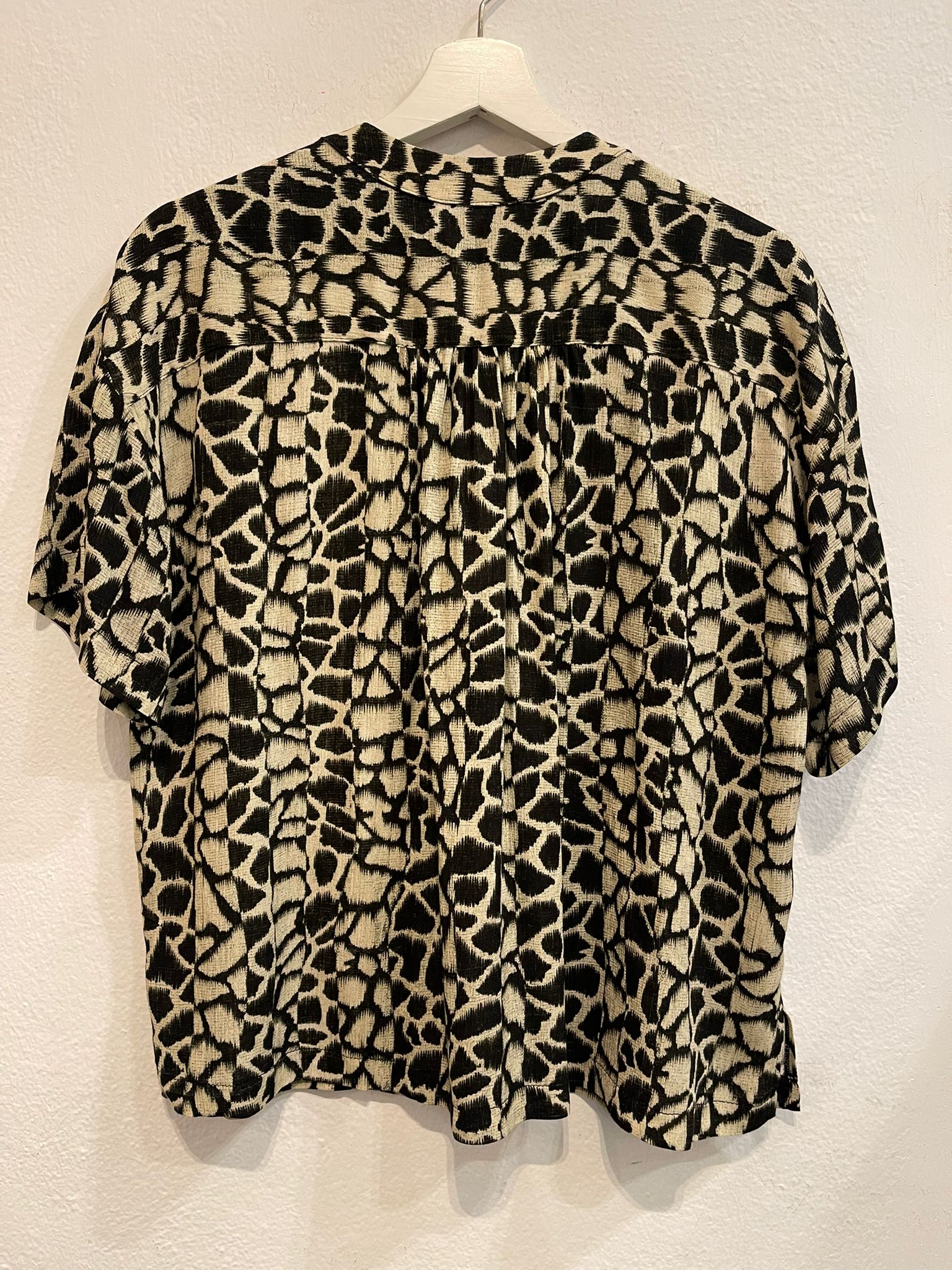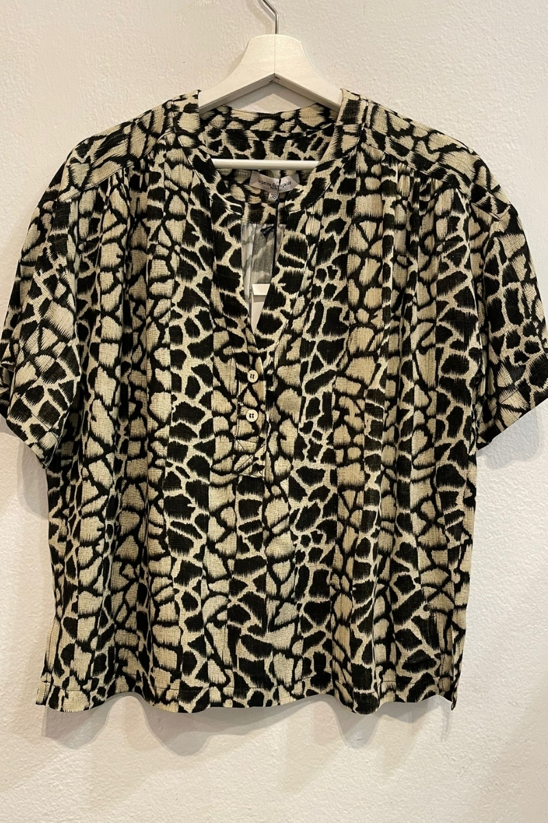 Blusa estampada con escote en pico y botones delanteros.