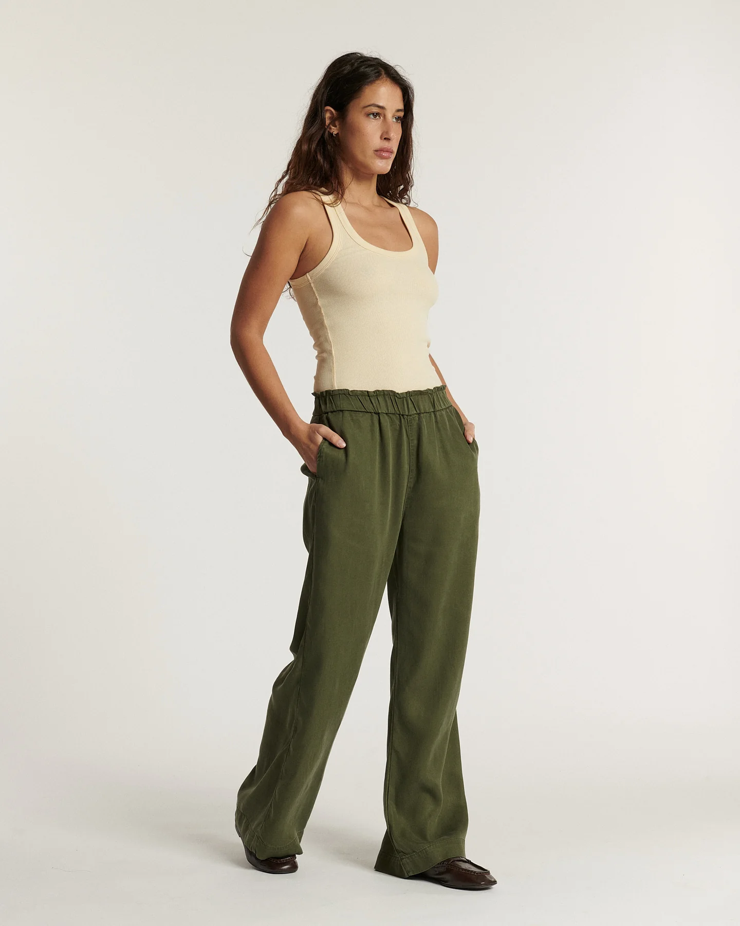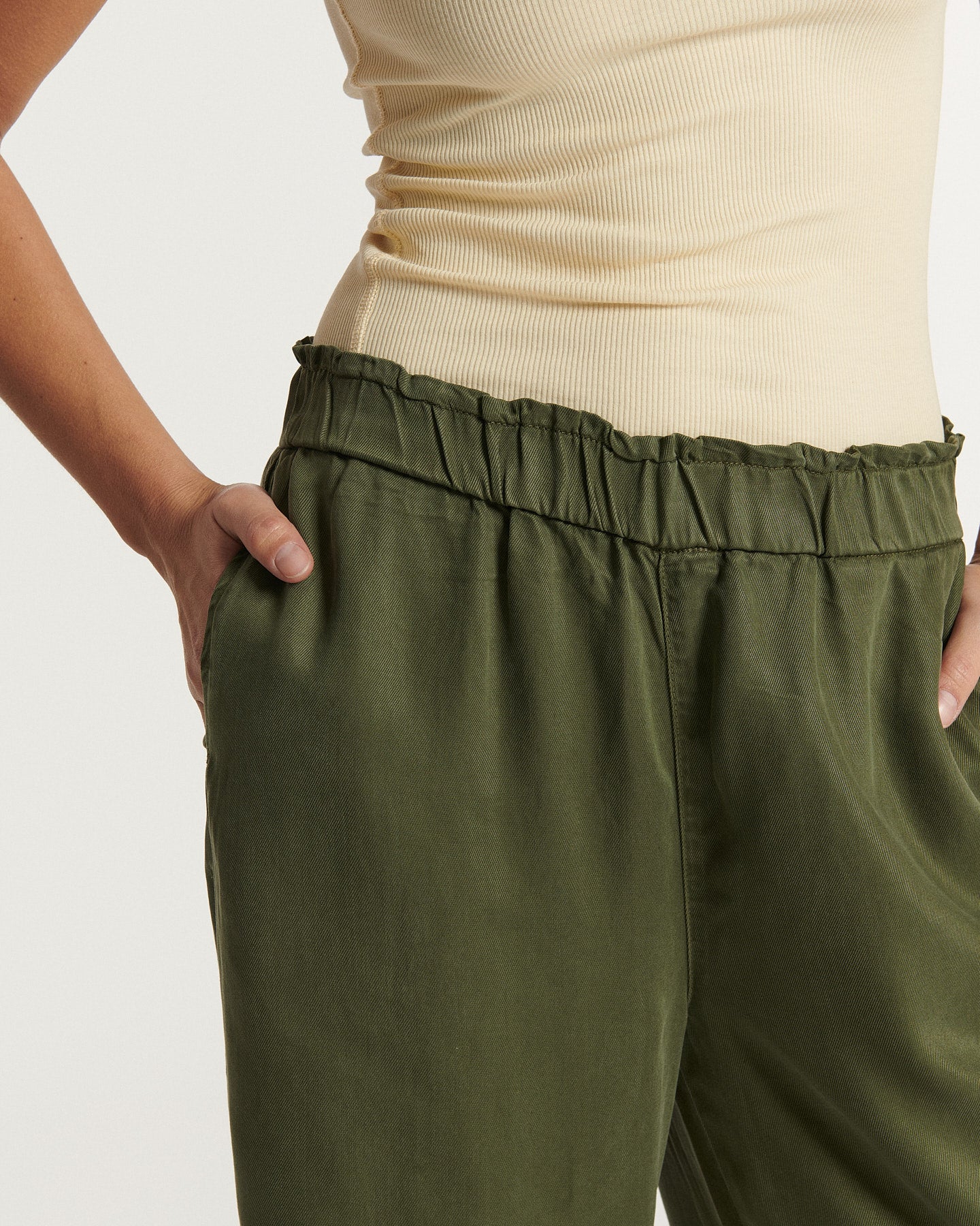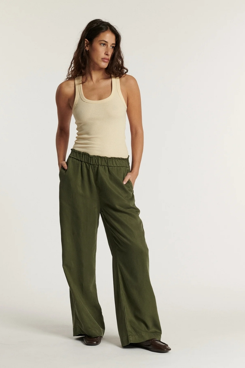 Corte recto y ancho, cintura media, comodidad absoluta.